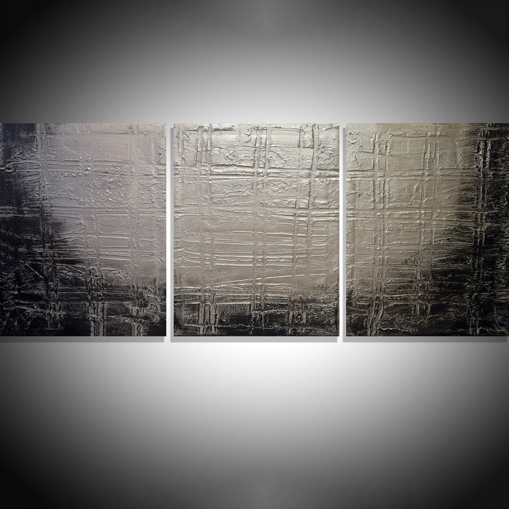 canvas painting in a triptych format " Silver Trance " original abstract art uk